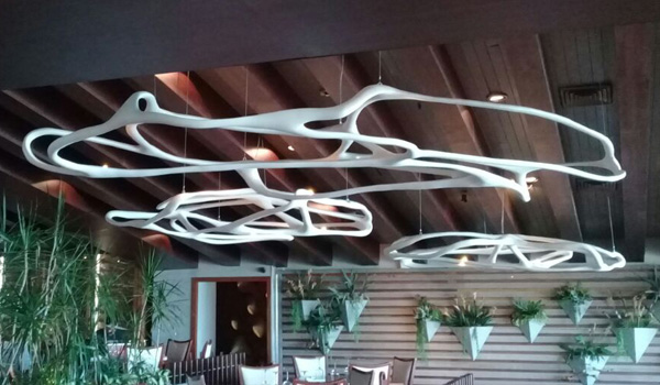 Lámparas Orgánicas: fabricadas en fibra de vidrio con un acabado color hueso de alto brillo.