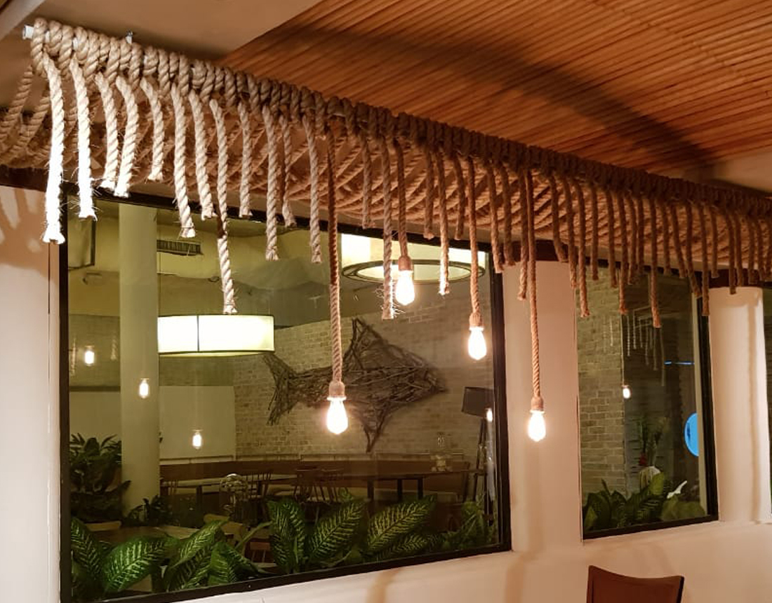 Plafón de Lámparas Cuerdas, 2018 Diseño: Concepto Visual Estudio Técnica: Cuerdas de henequén. Lugar: Fred’s Cancún, Cancún Q. Roo