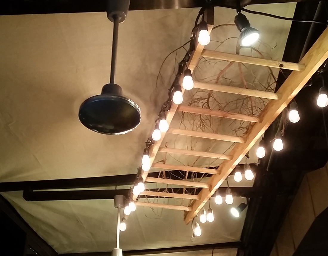 Lámpara Escalera, 2017 Diseño: Concepto Visual Estudio Técnica: Escalera de madera con serie de focos. Lugar: La Vicenta Azuna, Cancún Q. Roo