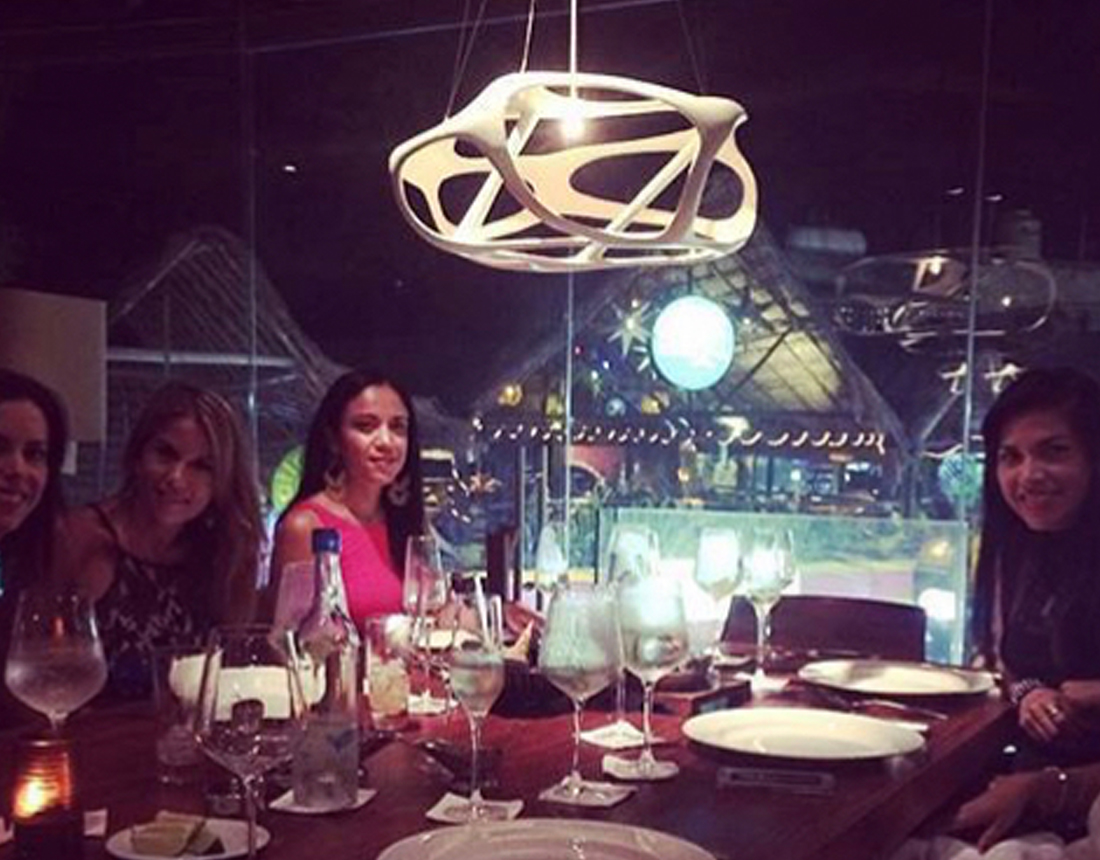 Lámpara Orgánica, 2017 Diseño: Concepto Visual Estudio Técnica: Fabricada en fibra de vidrio en un tono hueso. Lugar: Harry’s, Cancún y Playa del Carmen.
