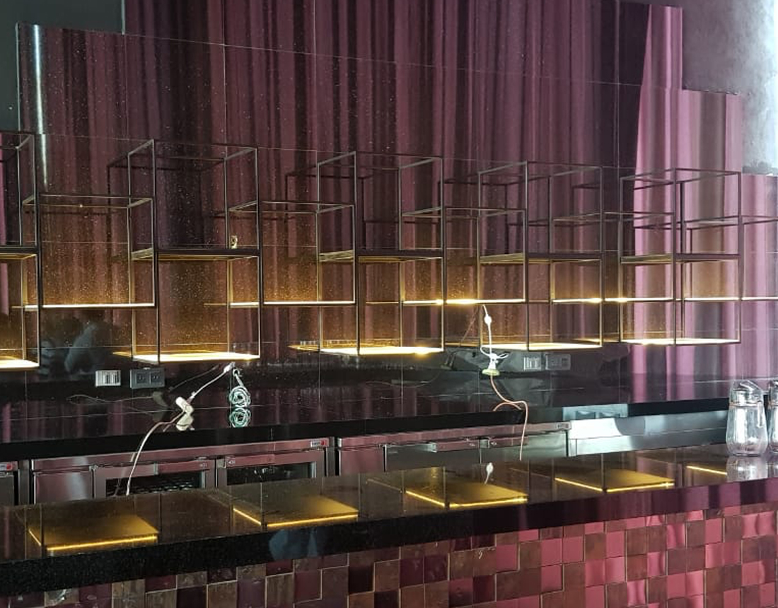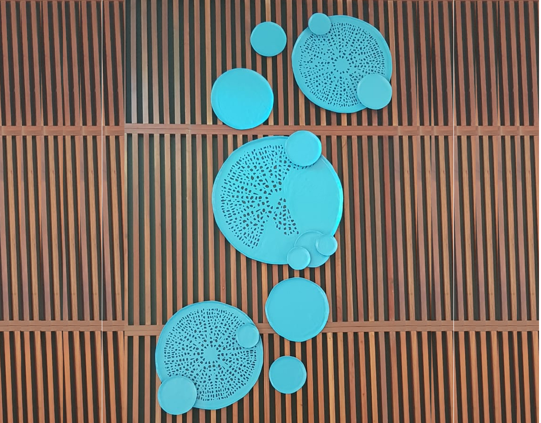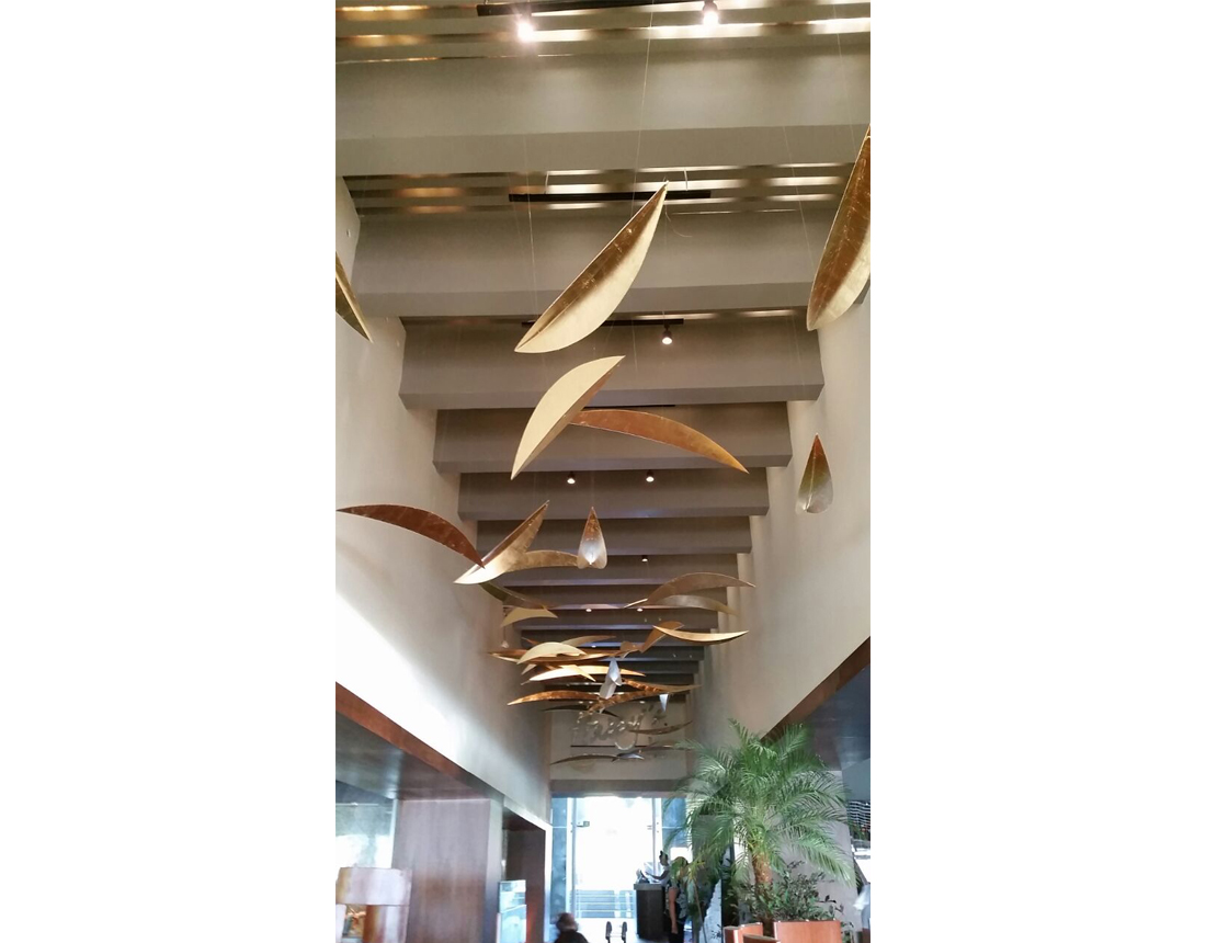 Hojas Metálicas, 2017 Diseño: Concepto Visual Estudio Técnica: Fibra de vidrio con hoja de oro. Lugar: Harry’s, Cancún Q. Roo